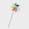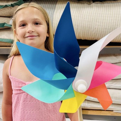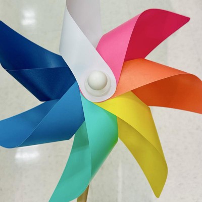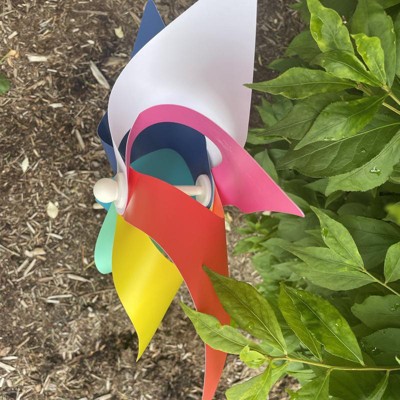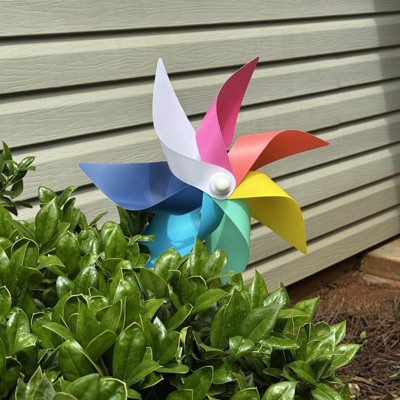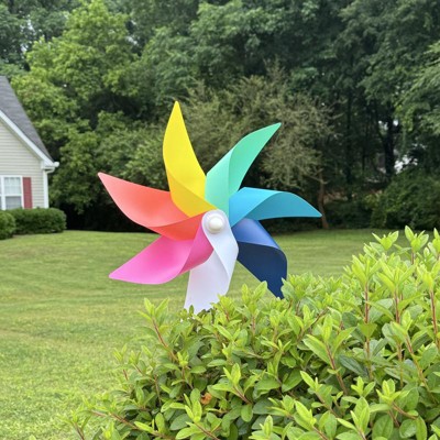 A: The pinwheel features a colorful design that adds a vibrant touch to any outdoor setting.