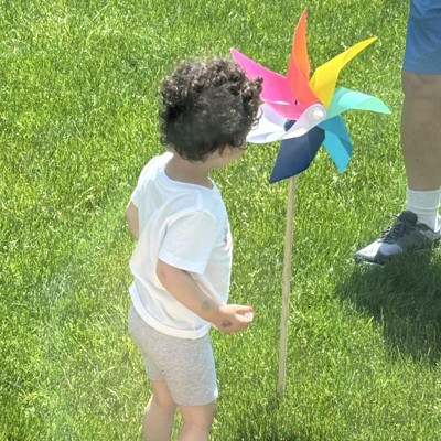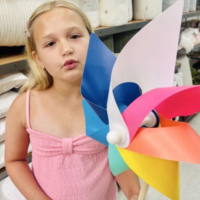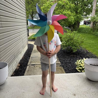 [This review was collected as part of a promotion.] This jumbo pinwheel is a perfect accessory for any house for the summer. Used for outside or inside or for a party decoration. It’s super colorful and very sturdy with a good quality wooden stick to attach to something or put in the ground. It measure 40 inches tall and you can see in my review pictures next to my daughter holding it. She enjoyed watching it blow around! It’s very pretty and would definitely recommend! I received an incentive to write this review.