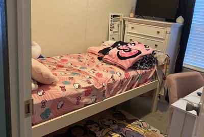 I bought this for my daughter’s princess style room and it looked great. She loved hoping on it and counting and saying the princesses names until she peed on it and my husband threw it out.
