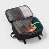 Travelling will be a breeze with this Travel Backpack with Expansion from Open Story™. Made of 100% recycled polyester shell material, this 40-litre backpack features a spacious zippered main compartment with mesh pockets to pack your larger items. It comes with a laptop sleeve that holds laptops up to 15 inches and has two exterior pockets to store small items. The trolley sleeve allows to attach it to a suitcase, while the shoulder straps, top and side handle offer convenient carrying options.