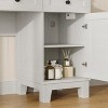 - Ample Storage: This wood vanity includes a large drawer with six compartments, open cubbies, and a side cabinet with an adjustable shelf, providing ample storage for beauty products and accessories while keeping your space organized and clutter-free
