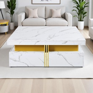 Functional Versatility: Beyond its aesthetic appeal, this coffee table offers functional versatility. The storage drawers not only keep your living space tidy but also provide easy access to items you frequently use. The spacious tabletop can hold decorative items, books, or even serve as a convenient surface for drinks and snacks.