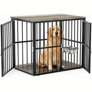- This dog cage furniture is made of sturdy engineered wood and a metal frame, capable of withstanding the damage from the most dynamic chewers. It offers a safe, stable and durable indoor pet space, ensuring your dog is comfortable and at ease every day.