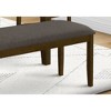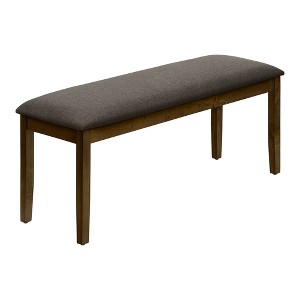 Stylish and durably designed 44" rectangular bench with a walnut brown solid wood frame and thick, foam cushioned brown fabric upholstered seat.