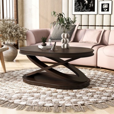 - American Style Coffee Table: This oval coffee table and end table feature a crisp American style with a simple, elegant natural design. Rounded corners, clean lines, and an antique finish exude classical charm. The unique X-shaped structure ensures stable support.
