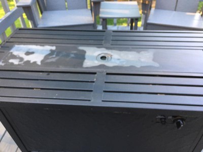 Love it so far, and even better that I got it during a good sale! Have only had it a few days, but it puts off a good amount of heat, and I like the rectangular design - it goes perfectly with an outdoor sectional. It comes with a metal cover for the fire area itself, but I wish it also came with a cover for the entire thing to protect it from the elements.