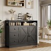47.2" Buffet Cabinet with Storage, Modern Farmhouse Sideboard Storage Cabinet with Power Outlet, 3 Drawers and 2 Barn Doors