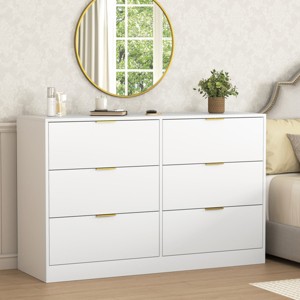 Elevate your home organization with this simply modern 6-drawer dresser, thoughtfully designed to blend style and functionality. The clean, minimalist silhouette brings a contemporary touch to any bedroom, living room, hallway, or entryway, effortlessly complementing a variety of home décor styles. Six generously sized drawers offer ample space to neatly store clothing, linens, accessories, and household essentials, keeping clutter at bay and your space looking polished. The spacious top surface is ideal for displaying treasured photos, plants, or decorative accents, allowing you to personalize your home with ease.