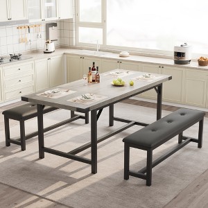 47.24–63 inch Extendable Dining Table Set for 4-6, Industrial Wood Table with 2 Benches, Small Space