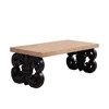 47" Black Scroll Base Coffee Table ¡ª Make a bold statement in your living room with this striking wood coffee table featuring a black ornate base and a natural wood top. Crafted with attention to detail, the carved scroll-work base offers a dramatic contrast against the warm wood finish of the tabletop.