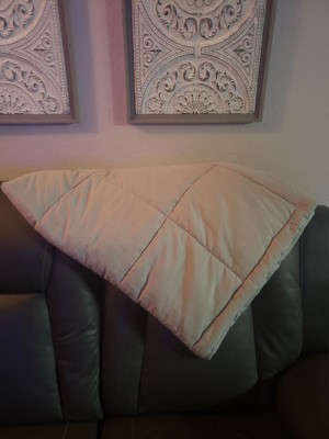 Cozy throw blanket. This down alternative blanket is very lightweight but also very warm. It is perfect for napping and staying warm on the couch. The light gray color matches with anything and so far has resisted stains. The blanket is very good for relaxing. The quilted pattern make it look luxurious and it can be left as a decorative piece when its not in use.