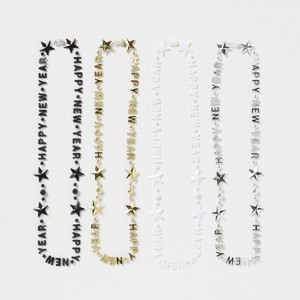 Cute plastic festive 4 count necklaces for New Years of any year. Note: They do tangle with eachother easily.