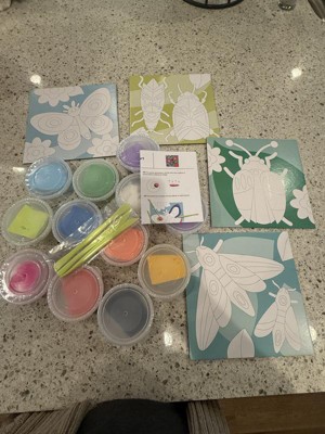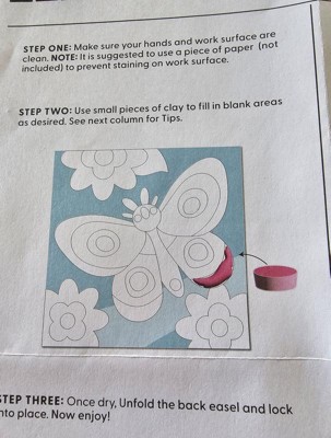Great art project for kids! Set comes with everything you need to make four pictures, lots of colorful clay and tool. My daughter enjoyed doing this project. This project is mess-free. All pictures have a stand, so it’s easy to display finished product.