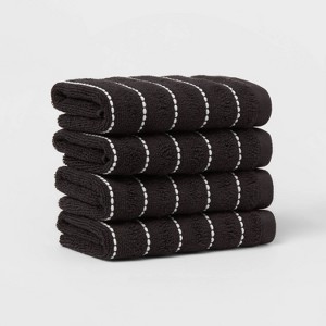 4pc Performance Plus Washcloths Black Striped - Threshold™: Heavyweight Terry, Fade-Resistant, 13"x13" Set