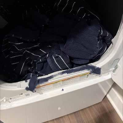 • A: The solid navy blue towels shed terribly. I’ve washed them 3 times and they’re still awful to use. Do not buy these
