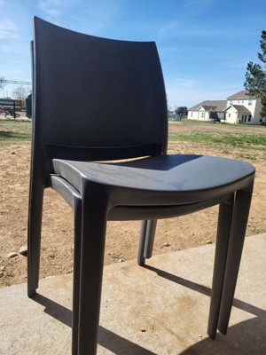 [This review was collected as part of a promotion.] I loved the look and the color of these chairs, they fit perfectly in our yard and looked like a part of our patio table. But I rated 3 stars based on how the experience was with kids. The design of the sit is made in a declining way to the back of the chair which make the kids think they are falling and they just want to get of the chair. And because the chair is made like a whole piece sometimes while moving it with a kid on it make the legs bend and make it dangerous. However it’s perfect for adults, and easy to clean