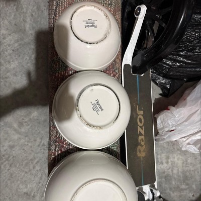 These bowls chip very easily. Typically it’s been on the bottom rim, which didn’t bother me, but recently we made banana bread and the top rim chipped and I didn’t notice until I found a chunk of sharp bowl in my cooked banana bread.