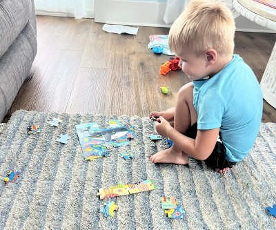 A: The puzzle set focuses on developing problem-solving skills in children.