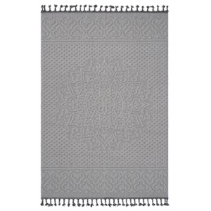 A: The rug's trendy design enhances various spaces, including living rooms, dining rooms, and nurseries.