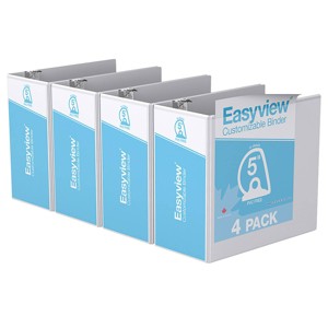 5" Premium Angle D Ring Binder 4pk Customizable View White - Easyview: Hard Cover, 950 Sheet Capacity, 2 Pockets