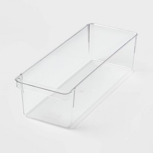 These bins are perfect for organizing cupboard storage. I use this size for hot cocoa packets and the smaller size for tea packets. They are priced right and perfect to keep things organized, appreciate the pull handle and the clear is great for seeing what is in them.