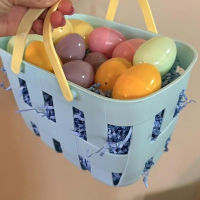 5.8"x9"x6.5" Plastic Easter Basket with Handles Blue/Yellow - Spritz™
