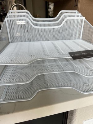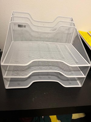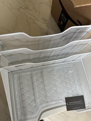[This review was collected as part of a promotion.] Mind Reader's Desktop Organizer is nearly a perfect 10. I love the way that it looks. The soft white is one of those calming shades that just puts your mind at ease and looks so classic. The wire mesh is stronger than other similar products use. I put some heavy folders in this organizer, and it didn't bow in at all. The sections are also much wider than other organizers. I bought one not too long ago, and I can barely fit one of my large file folders. I can fit full binders in this organizer! The only thing i can complain about at all; and this is just me being the pickiest person ever, is that it is just like a quarter inch too short to properly fit my binders in the bottom part. This product is still near perfection and I would recommend it to everyone.