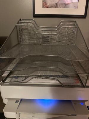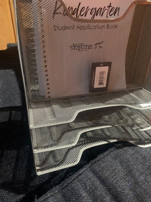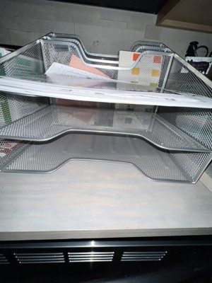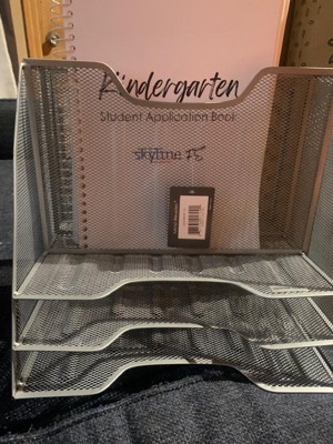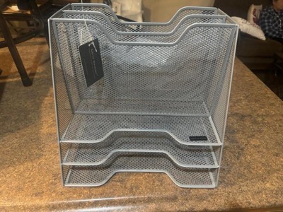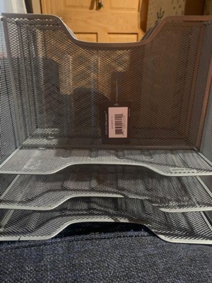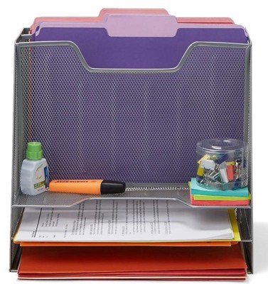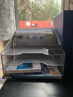 [This review was collected as part of a promotion.] This is great for a desk to organize all the random papers. I use mine for printer paper and incoming mail. It’s metal and a slate grey color. It’s very sleek looking and perfect to add a little structure to a messy area.
