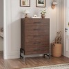 Elevate your home organization with this elegant 50.5-inch tall dresser, designed to maximize storage without compromising on aesthetics. The five deep drawers (each with smooth-gliding metal rails) offer ample room for folded clothes, blankets, toys, or office supplies, while the reinforced tabletop supports decor, plants, or even a small TV. The distinctive leg design not only adds modern character but also creates clearance for robotic vacuums, making floor cleaning effortless.Constructed from premium MDF with a scratch-resistant and waterproof surface, this dresser is built to withstand daily use. The metal legs provide robust support, and the included anti-tip kit secures it to the wall for added safety—ideal for families with young children or pets. Its natural wood finish and minimalist hardware blend seamlessly into any decor, serving as a focal point in bedrooms, a console in living areas, or a practical drop-zone in entryways.Whether you’re furnishing a cozy apartment or a spacious house, this versatile piece combines practicality with design. Easy to assemble with labeled parts and illustrated instructions, it’s the perfect upgrade for those seeking both form and function.Key Features: