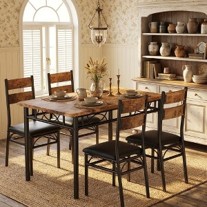 5-Pc Industrial Dining Set: Rectangular Table & 4 High-Back Chairs, Retro Brown