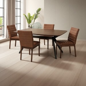 - CLASSIC-MODERN VERSATILITY: This 5-piece dining set (1 table + 4 chairs) blends classic style with practicality, fitting seamlessly into diverse interior decors. Crafted with a premium tabletop and comfortable chairs, it delivers both quality and elegance for family dinners or everyday meals.
