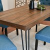 ELEGANT DESIGN HIGHLIGHTS: Rustic dark pine tabletop showcases natural wood grain for warm charm, with metallic hairpin legs adding modern industrial flair. Chairs stand out with button-tufted details (a touch of sophistication) and dark espresso legs that perfectly complement the table. Vibrant blue polyester upholstery creates a striking contrast, elevating the set’s elegance.