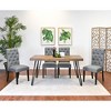 ELEGANT DESIGN HIGHLIGHTS: Rustic dark pine tabletop showcases natural wood grain for warm charm, with metallic hairpin legs adding modern industrial flair. Chairs stand out with button-tufted details (a touch of sophistication) and dark espresso legs that perfectly complement the table. Vibrant blue polyester upholstery creates a striking contrast, elevating the set’s elegance.