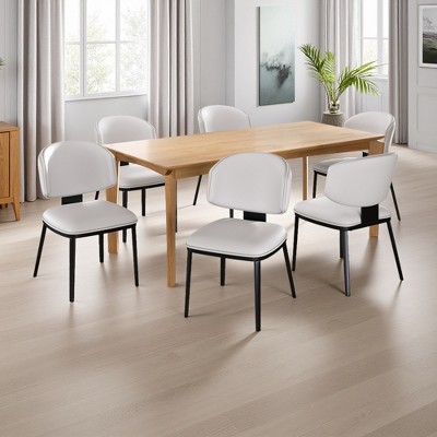 COMFORTABLE FAUX LEATHER CHAIRS: Chair seats are crafted with faux leather, reinforced by a flexible weave underneath. Tightly wrapped around the frame, they offer unique, pliable seating that balances comfort and durability for long sits.