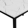 Faux Marble Tabletop with Protective Coating The table features a laminated paper faux marble print in off-white, providing an elegant and sophisticated look. A protective coating ensures durability and easy maintenance, making it ideal for everyday use.