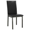 Slim Parson Chairs with Black Leatherette Upholstery Includes four slim parson chairs upholstered in black leatherette, providing both comfort and sophistication, while their sleek design complements the table¡¯s transitional style.