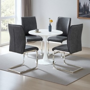 5-Piece Dining Set with Round Table and 4 PU Armless Chairs