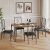 - 5-Piece Dining Table Set: This set comfortably seats 2-4 guests, The 4-person dining table set seamlessly combines natural woodgrain veneers with robust Roman column metal tubing, showcasing elegance and exceptional craftsmanship. The table chairs set for kitchen, dormitory, living room, study room, office and meeting room.