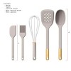 The perfect addition to your kitchen, our 5-Piece Kitchen Set has all the essentials. Featuring a slotted turner, spoon, mini spatula, whisk, and mini basting brush that are all chemical-free, and dishwasher safe. Kitchenware combines elegant design, contemporary colors and modern silhouettes for high-performance appliances that look in your kitchen. Condition: new.