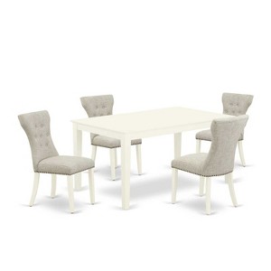 5-Piece Linen White Finish Solid Wood Top - Rectangular Dining Room Set - Seats 4