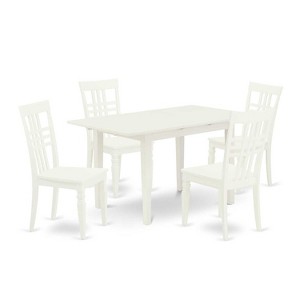 5-Piece Linen White Finish Solid Wood Top - Rectangular Dining Room Set - Seats 4