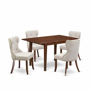5-Piece Mahogany Finish Solid Wood Top - Rectangular Dining Room Set Seats-4