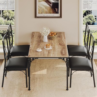 5 Piece Rectangular Kitchen Table Set, Space-Saving Kitchen & Dining Room Table for 4-6