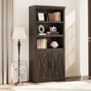 5 Tier Book case with Cabinet, Farmhouse Book Shelf with Storage Doors, 68.7" Tall Wooden 5 Shelf Case for Home Office, Living Room, Bed Room-(68.7" H x 31.5" W x 12.9" D)