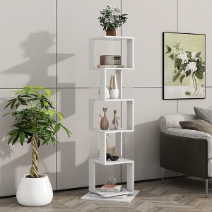 5 tier Rotating Bookshelf, Floor Rack Bookcase with Acrylic plate Student Multi-Function Creative Bookshelf for Living Room with anti-toppling base