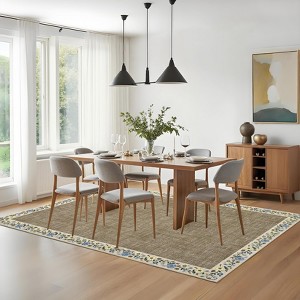 Washable Living Room Rug, Thin Indoor Bordered Carpet with Non-Slip Backing for Bedroom, Dining Room, Home Office, Soft Low
