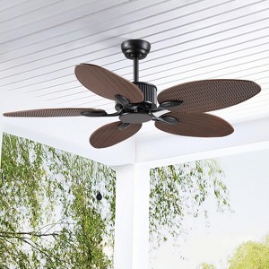 50 Inch Tropical Ceiling Fan with Light and Remote Glass Light Cover Palm Leaf Blades - 1 of 4