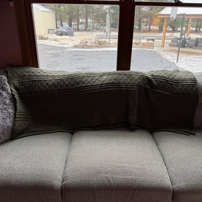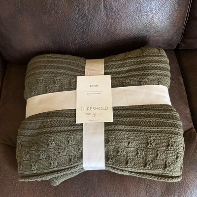 [This review was collected as part of a promotion.] I love this 50 x 60 green knit throw blanket Buy threshold. This looks great against my couch as a backdrop and it helped me super warm as well as my husband. I love the knitting details that it has it makes it look handmade. Very cute. Throw blanket dress it up as a decoration or use it to keep you nice and cozy.