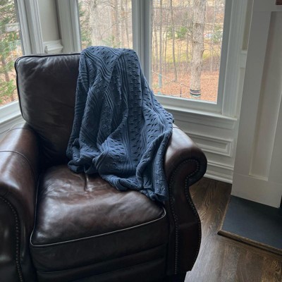 [This review was collected as part of a promotion.] This navy blue knit throw is absolutely beautiful and incredibly cozy. The knit texture is soft and inviting, with a high-quality feel that’s perfect for every day use. The deep navy color is rich and elegant, adding a warm, sophisticated touch to any sofa, chair, or bed. It’s the perfect weight – warm without being too heavy – making it great for lounging, movie nights, or layering as decor.