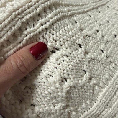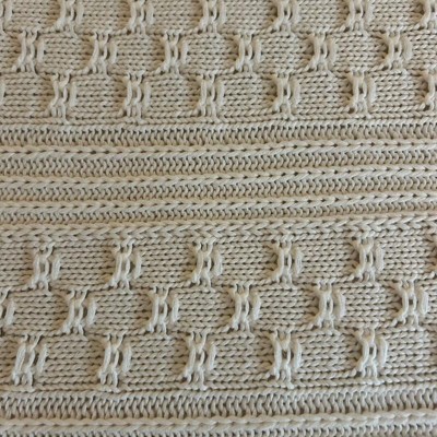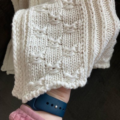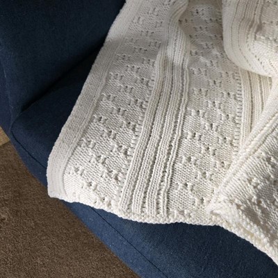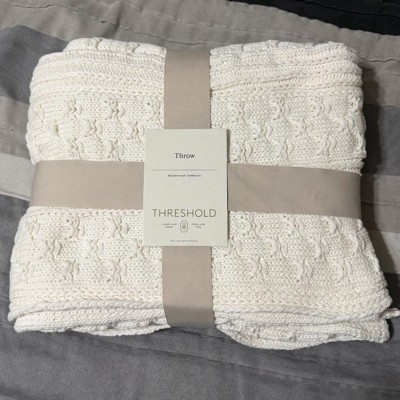 [This review was collected as part of a promotion.] I love this off-white dimensional, knit blanket that is made by threshold. This is a dimensional knit blanket. I love the design of the knitting this look great against my couch. It kept me nice and cozy as well. I will use this on my bed as a decoration and not downstairs where my dog can get it dirty.